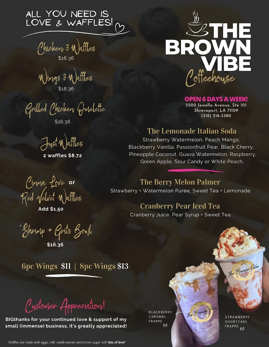 Located at 5500 Jewella Ave, Shreveport, LA, The Brown Vibe Coffeehouse is a delightful sanctuary for coffee lovers and foodies alike. The menu, while diverse, highlights their commitment to flavor and freshness. Patrons rave about the white macadamia nut latte and the highly recommended apple crisp latte, both crafted with passion.