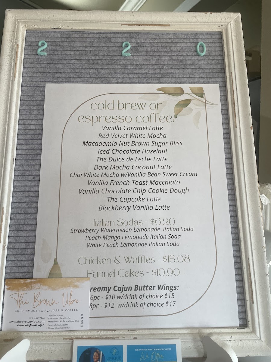 The Brown Vibe Coffeehouse Menu